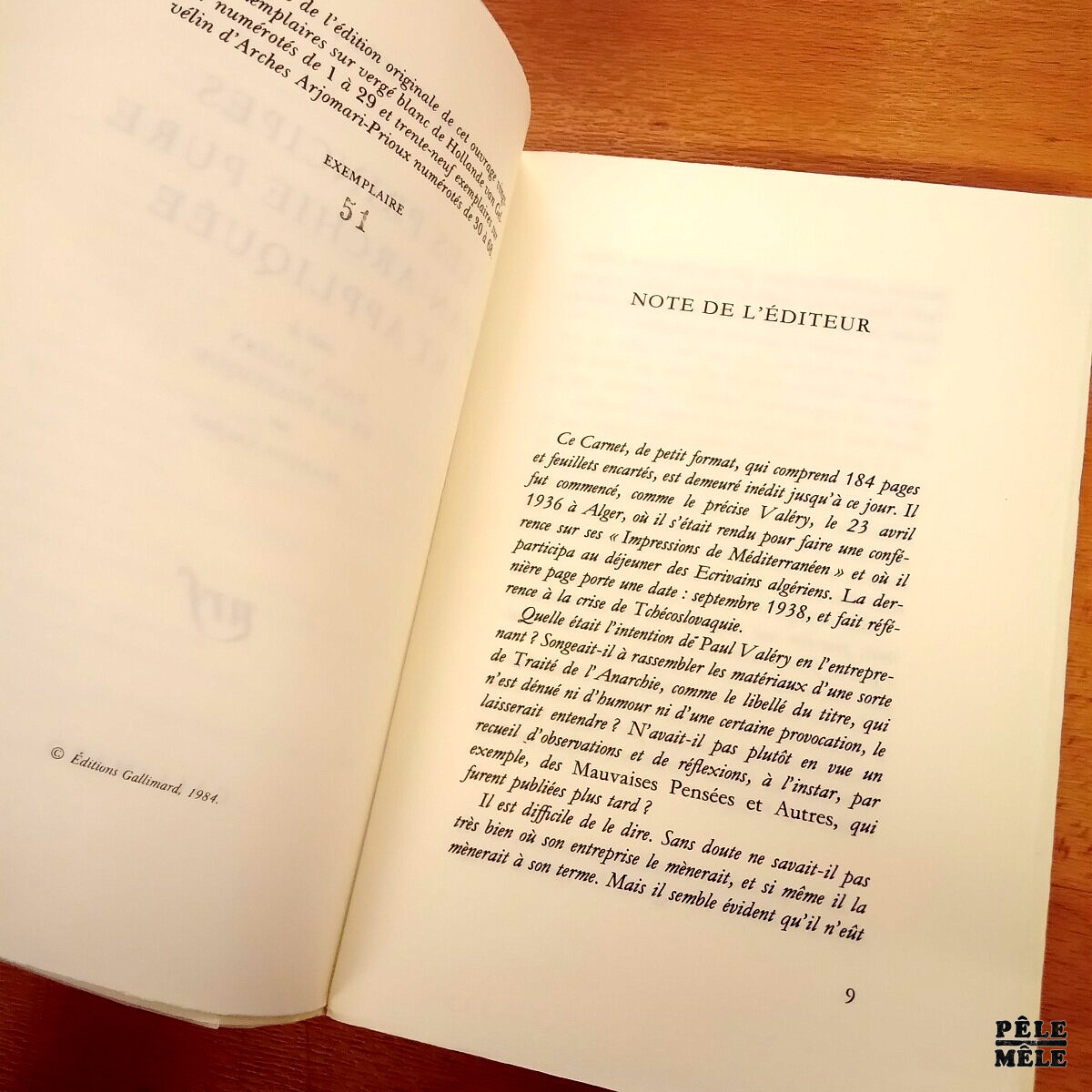 Les principes d’an-archie pure et appliquée – Paul Valéry / Chez la NRF 1984