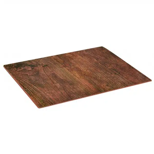 Plateau rectangulaire en melamine, imitation bois sur pieds silicone