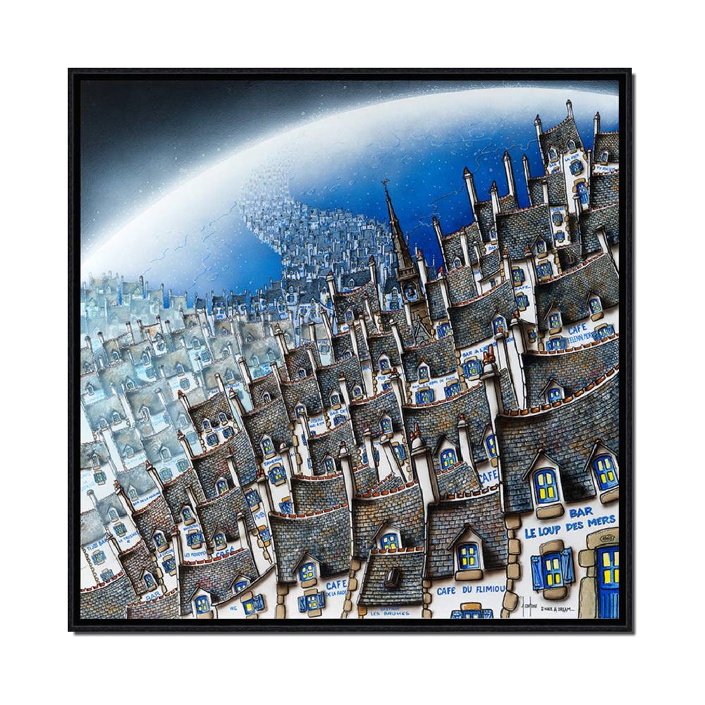 Cette décoration murale est une reproduction encadrée sans verre de l’artiste de Locronan Alain Coadou.